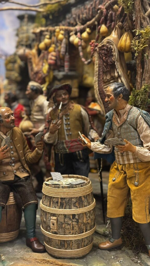 The exhibition is divided into three sections. The first, “The 18th-Century Neapolitan Nativity“, bears witness to the artistic legacy left by the rulers of the Kingdom of Naples and the ability of contemporary masters, such as Ercolano, to renew it while keeping the traditional techniques of the Neapolitan school intact. The second, “Italian Nativity Traditions“, offers a comparison between different schools, styles and visions, highlighting the richness of Italian craftsmanship and the ability to reinterpret the Nativity through different materials and languages. The third, “The Charm of Paper Nativity Scenes“, is a collection of chromolithographs, lithographs and paper nativity scenes from the 19th and 20th centuries, enriched by a life-size painted nativity scene and an educational video.