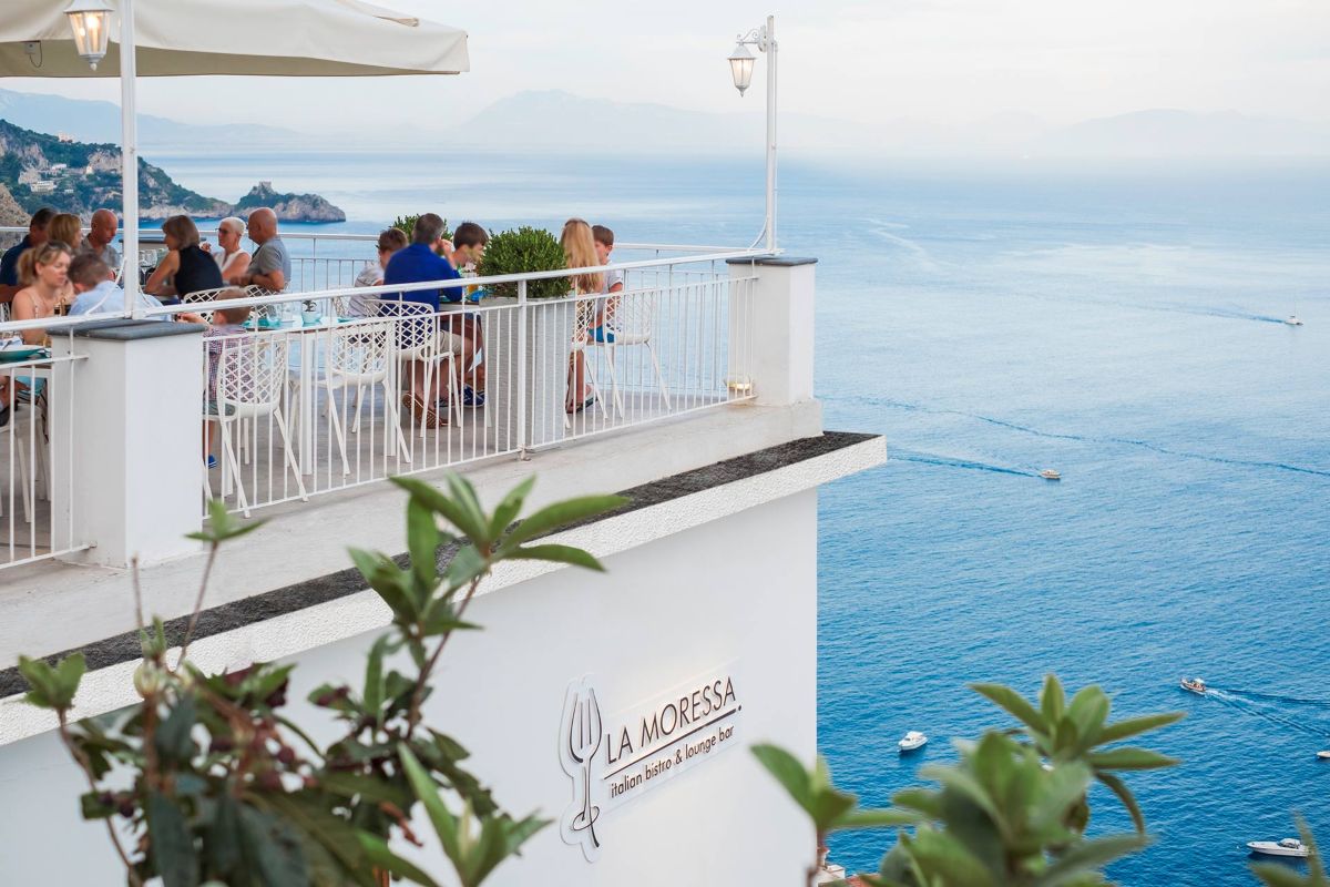 La Moressa è un elegante bistrò e lounge bar ubicato nell’omonima piazza, nel cuore di Praiano. Uno dei suoi punti di forza è la terrazza, perfetta per cenare nelle serate estive al chiaro di luna, godendo di una vista spettacolare e dell’atmosfera unica della Costiera Amalfitana. L’ambiente è curato e accogliente, caratterizzato da un arredamento interamente dominato dalla tonalità del bianco. Il menu offre una vasta selezione di piatti a base di pesce, pescato quotidianamente in zona e cucinato seguendo le ricette tipiche della tradizione mediterranea italiana. Ogni sera propone anche un menù speciale che combina piatti classici e fantasia culinaria.