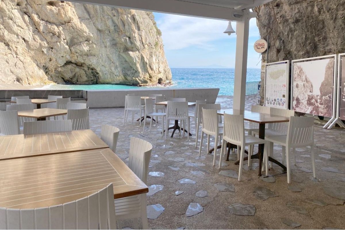 Sempre a Marina di Praia si trova la Trattoria Da Armandino, uno dei ristoranti più autentici e amati della zona. Qui la vista è intima e suggestiva, con i tavoli affacciati sulla piccola baia incorniciata dalle scogliere. L’atmosfera è familiare e accogliente, perfetta per chi cerca un’esperienza genuina. La cucina è semplice ma di grande qualità, basata su ricette della tradizione locale e materie prime accuratamente selezionate. Ogni piatto racconta il territorio, senza eccessi ma con grande attenzione al gusto. È il posto ideale per chi cerca un ambiente rustico, semplice e informale, con una vista davvero unica.