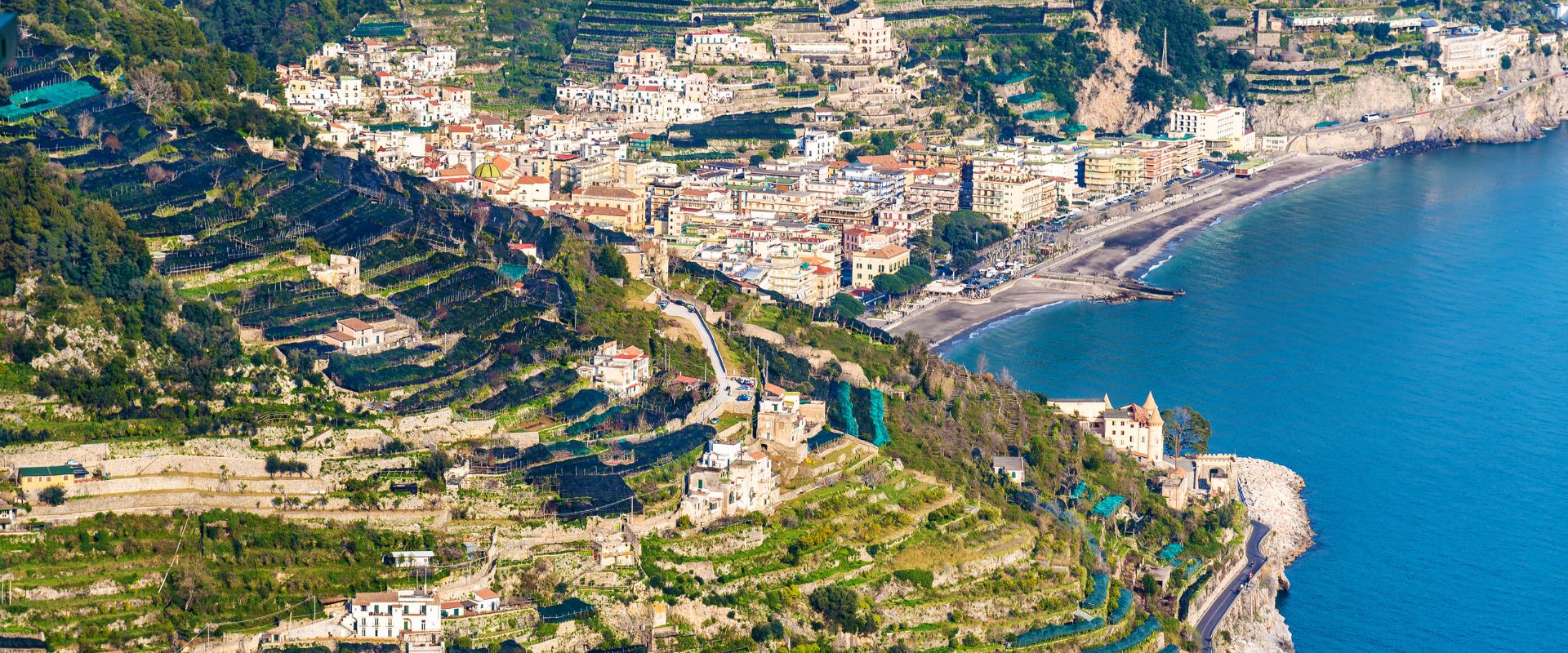 Synthesis of the picturesque urban environment is the splendid Cathedral of Sant’Andrea, dating back to the 9th century but rebuilt in the early 13th century in Arab-Norman style and a second time in the 13th century, with its marvellous staircase and famous frescoed cloister known as the Cloister of Paradise. Here, you will find some of the most beautiful beaches on the coast: Marina Grande beach, whose central location and charming setting make it one of the most popular destinations; and Duoglio beach, more intimate and quiet.