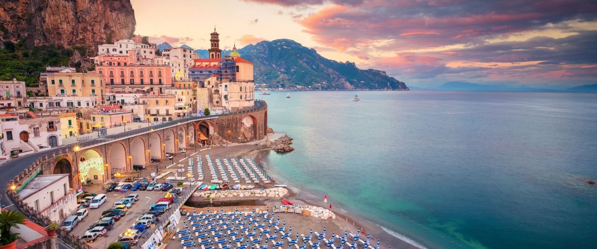 Amalfi, which gives its name to the entire coastline, is world-famous for its artistic beauty and charming inlets that hide enchanting beaches. Sloping down to the sea along the slope at the end of the Valle dei Mulini, it was the first Maritime Republic of Italy, with its own currency and laws.