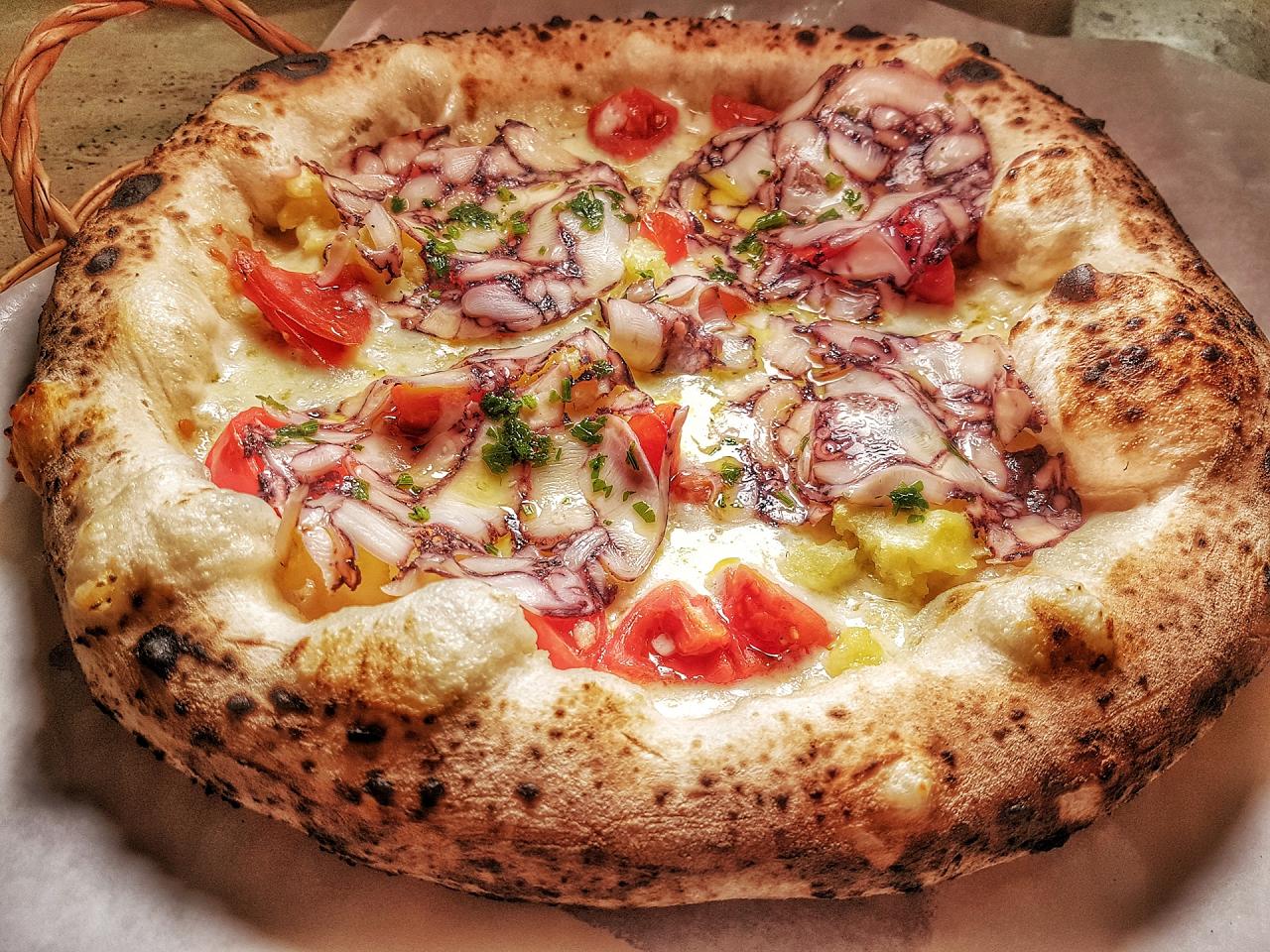 Another name to mark down is that of Pizzeria Divina Vietri in Vietri sul Mare. Located at number 31 Via Passariello, it specialises in “seafood-flavoured” pizzas (a true all-seafood gourmet) but you can also find a vast assortment of earthy or classic pizzas. Their philosophy is to try to achieve with a few elements a simple flavour that enhances the key ingredient on which the pizza of your choice is based. Among the countless pizzas on offer, we recommend the Divina Vietri with octopus soppressata marinated in evo oil and sfusato amalfitano, cream of potatoes, piccadilly tomatoes, fior di latte, fresh chopped parsley and lemon oil.