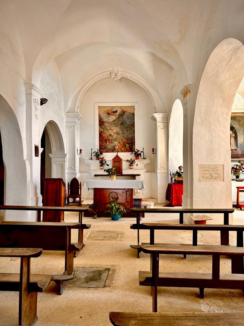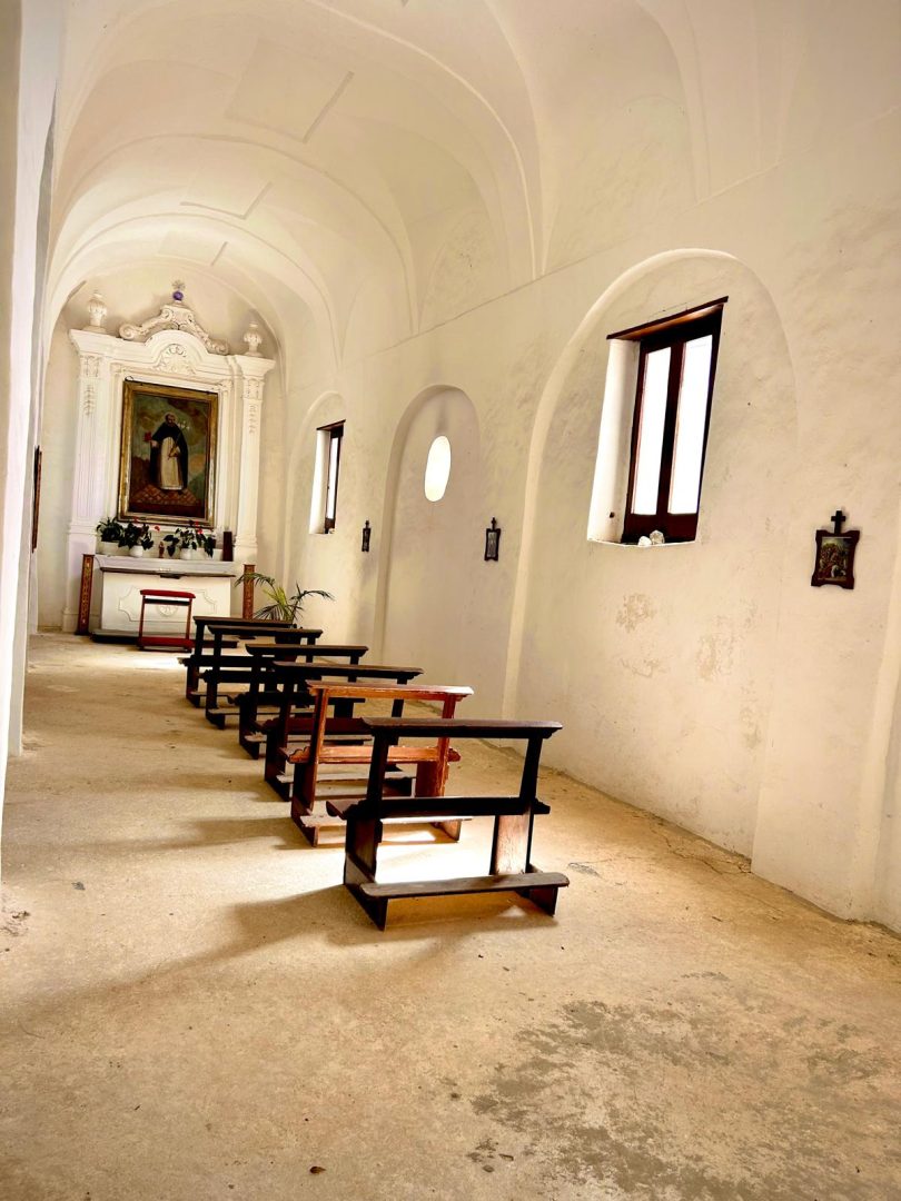 Regarding the origins of the place of worship, there is indeed no precise information. What is certain, however, is that it must date back a long way, given the presence of a stone altar, interpreted by scholars as a pagan altar. A local tradition has it that the church was built following a mysterious apparition of the Virgin to a humble local peasant girl. In this regard, a document from 1848 states that ‘the church was built because the image of the Blessed Virgin of Graces was found there, which can currently be seen painted in the factory on the altar of the nave‘. The earliest written record is an act dated 2 October 1599, stipulated between the University of Praiano and Vettica Maggiore (which owned the Church of Santa Maria a Castro ad antiguo), by which the University granted the Dominican Friars the church, undertaking to build the adjoining convent.